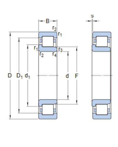 Single row cylindrical roller bearings are designed to accommodate high radial loads in combination with high speeds. Having two integral flanges on the outer ring and one on the inner ring, NJ design bearings can accommodate axial displacement in one direction. An important feature is the separable design, which facilitates mounting and enables the bearing components to be interchanged.