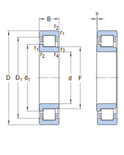Single row cylindrical roller bearings are designed to accommodate high radial loads in combination with high speeds. Having two integral flanges on the outer ring and one on the inner ring, NJ design bearings can accommodate axial displacement in one direction. An important feature is the separable design, which facilitates mounting and enables the bearing components to be interchanged.