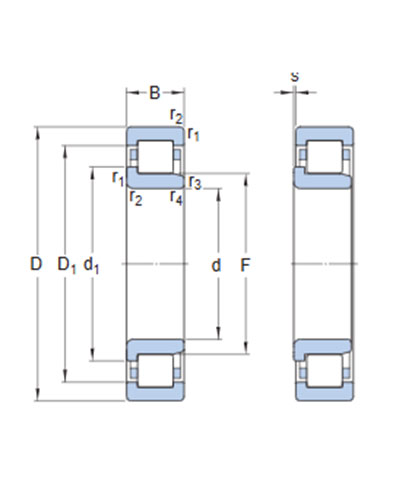 Single row cylindrical roller bearings are designed to accommodate high radial loads in combination with high speeds. Having two integral flanges on the outer ring and one on the inner ring, NJ design bearings can accommodate axial displacement in one direction. An important feature is the separable design, which facilitates mounting and enables the bearing components to be interchanged.