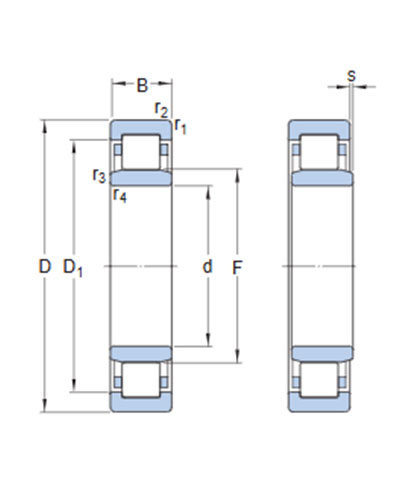 Single row cylindrical roller bearings are designed to accommodate high radial loads in combination with high speeds. Having two integral flanges on the outer ring and no flanges on the inner ring, NU design bearings can accommodate axial displacement in both directions. An important feature is the separable design, which facilitates mounting and enables the bearing components to be interchanged.