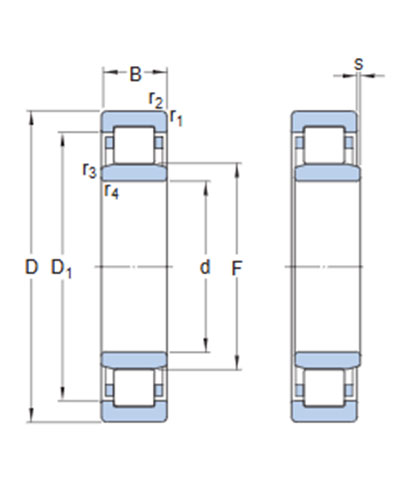 Single row cylindrical roller bearings are designed to accommodate high radial loads in combination with high speeds. Having two integral flanges on the outer ring and no flanges on the inner ring, NU design bearings can accommodate axial displacement in both directions. An important feature is the separable design, which facilitates mounting and enables the bearing components to be interchanged.