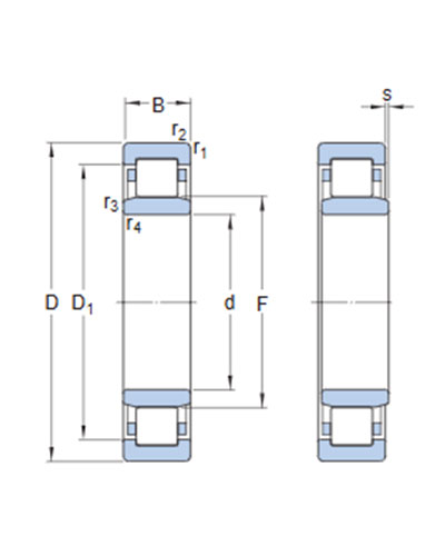 Single row cylindrical roller bearings are designed to accommodate high radial loads in combination with high speeds. Having two integral flanges on the outer ring and no flanges on the inner ring, NU design bearings can accommodate axial displacement in both directions. An important feature is the separable design, which facilitates mounting and enables the bearing components to be interchanged.