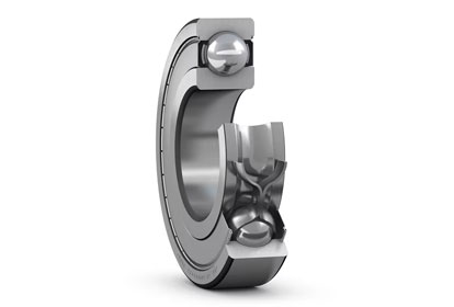 Single row deep groove ball bearings with seals or shields are particularly versatile, have low friction and are optimized for low noise and low vibration, which enables high rotational speeds. They accommodate radial and axial loads in both directions, are easy to mount, and require less maintenance than many other bearing types. The integral sealing can significantly prolong bearing service life because it keeps lubricant in the bearings and contaminants out.