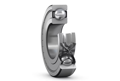 Single row deep groove ball bearings with seals or shields are particularly versatile, have low friction and are optimized for low noise and low vibration, which enables high rotational speeds. They accommodate radial and axial loads in both directions, are easy to mount, and require less maintenance than many other bearing types. The integral sealing can significantly prolong bearing service life because it keeps lubricant in the bearings and contaminants out.