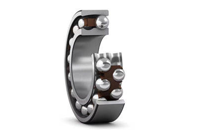 Self-aligning ball bearings, with seals on both sides, have two rows of balls, a common sphered raceway in the outer ring and two deep uninterrupted raceway grooves in the inner ring. They are insensitive to angular misalignment of the shaft relative to the housing. The integral sealing can significantly prolong bearing service life because it keeps lubricant in the bearings and contaminants out.